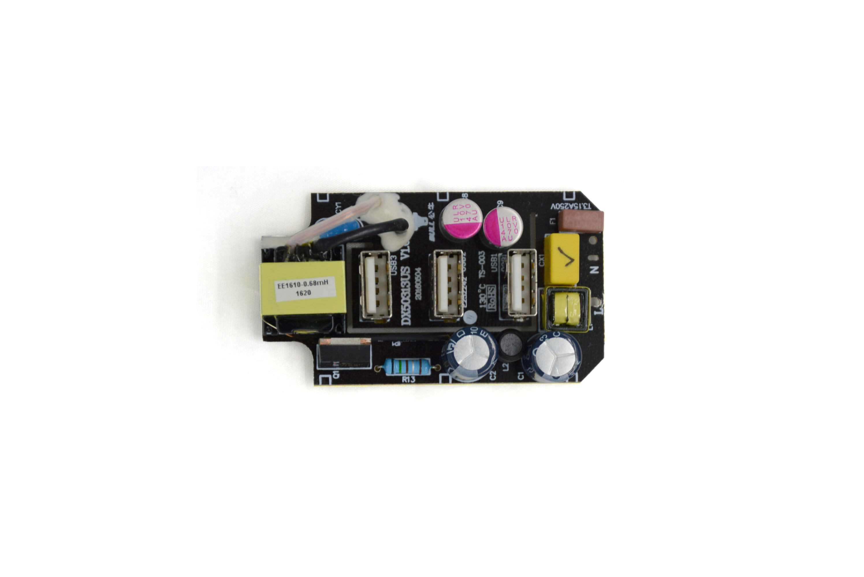 3-way USB output, full load current 3.1a; The maximum single channel current is 2.4a, compatible with apple 2.4a/1.0a, Samsung 2.1a and DCP 1A charging modes.