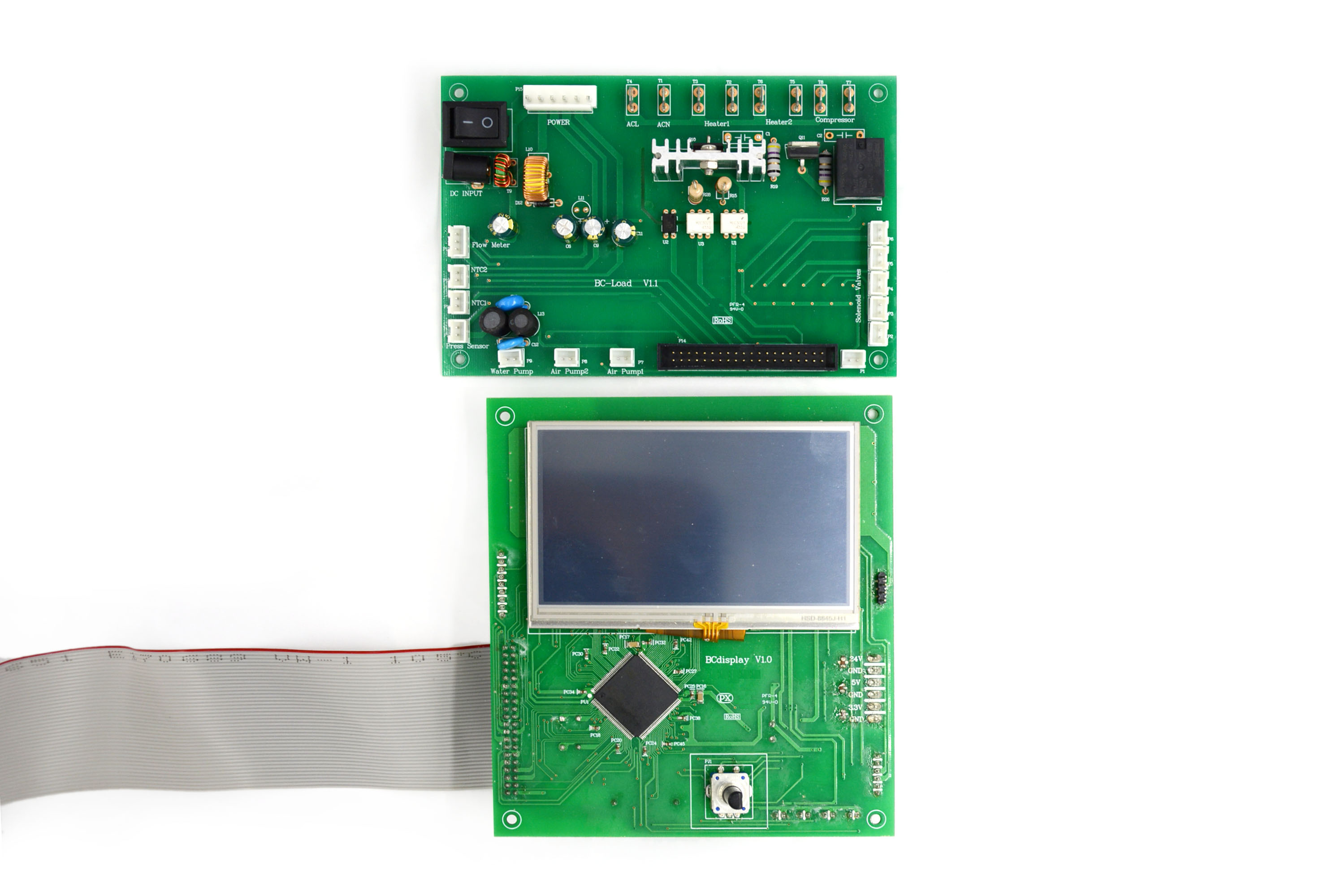 Product features: 1 Display mode: a 4.2-inch TFF screen is ed as the display output of the beer machine, which has rich color menu ion functions, and text and image are used to cooperate with the display content to make the interface more friendly and ensure the good image of the product; two Key input: combined with the industrial design of the whole beer machine, the rotary dial switch key is ed, which can not only beautify the beer machine, but also meet the menu ion and setting functions of multi-function keys; three Control input: two NTCs are used to detect the temperature in the beer barrel and the water inlet temperature for beer respectively, one pressure sensor is set to detect the pressure in the beer barrel in real time, and multi-channel switch signals are also provided to detect the state of the barrel cover and the state of the beer outlet handle; four Control output: the multi-channel solenoid valve and water pump are used to control the beer capsule and beer water into the barrel