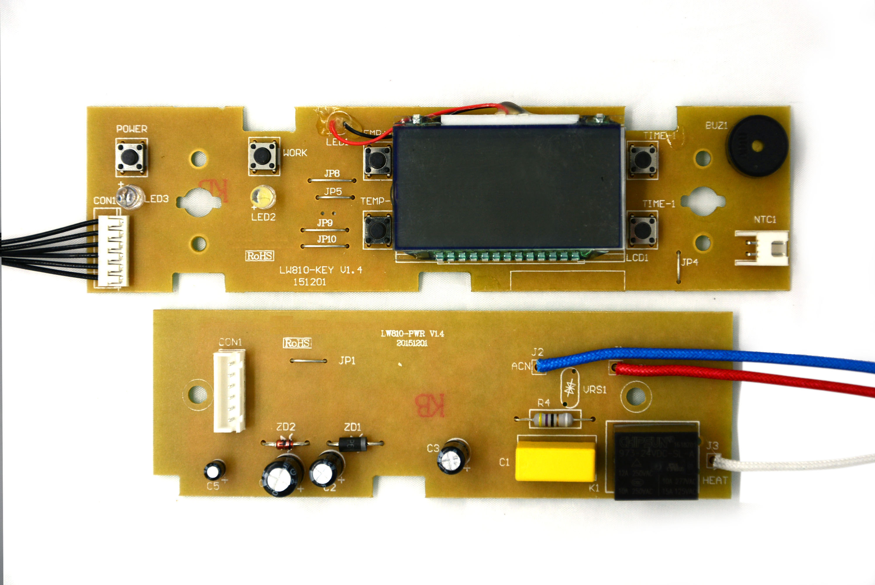 Product features: 1. This product has six keys and a LCD screen. There are lights under the two keys on the left. The backlight of the power key is red, the backlight of the time adjustment key is white, and the keys for temperature and time adjustment have no backlight; 2. The initial set temperature of the display screen is 150 ℃. Each time you press the "+" sign, you will increase 10 ℃ to 230 ℃, and then press the "+" sign to start from 150, and the reverse is the same; 3. If the temperature sensing element is open, the electric heating tube is disconnected after heating for 10 seconds, the power indicator is white and flashes quickly, all keys fail, and the LCD displays "err 01"; 4. If the temperature sensing element is short circuited, the electric heating tube is disconnected after heating for 10 seconds, the power indicator is white and flashes quickly, all keys fail, and the LCD displays "err"