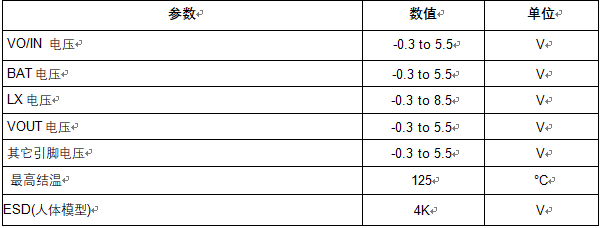 备注:超过上面极限参数可能引起器件永久性损坏。这些仅仅是应力极限值,器件不建议在这些极限值或者其他任何超过下面“推荐工作条件”的条件下工作。长时间暴露在上面极限参数条件下工作可能影响器件可靠性。