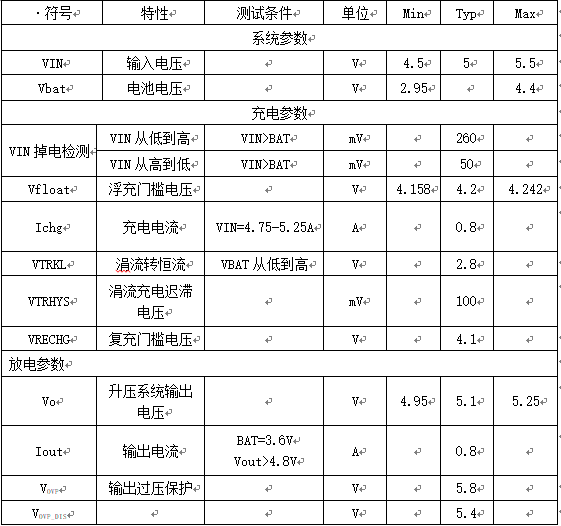 ◆ 涓流/恒流/恒压三段式充电,充满恒定电压值4.2V(典型值),支持对0V电池充电;