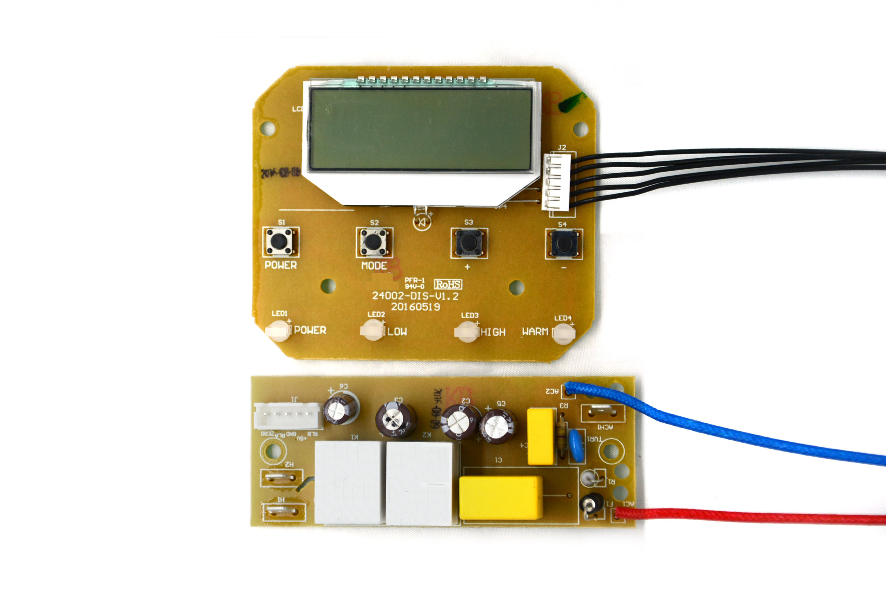 LCD显示慢炖倒计时,带一个电源按键、一个模式选择按键、一个加键和一个减键,有高、低、保温三档慢炖功能。