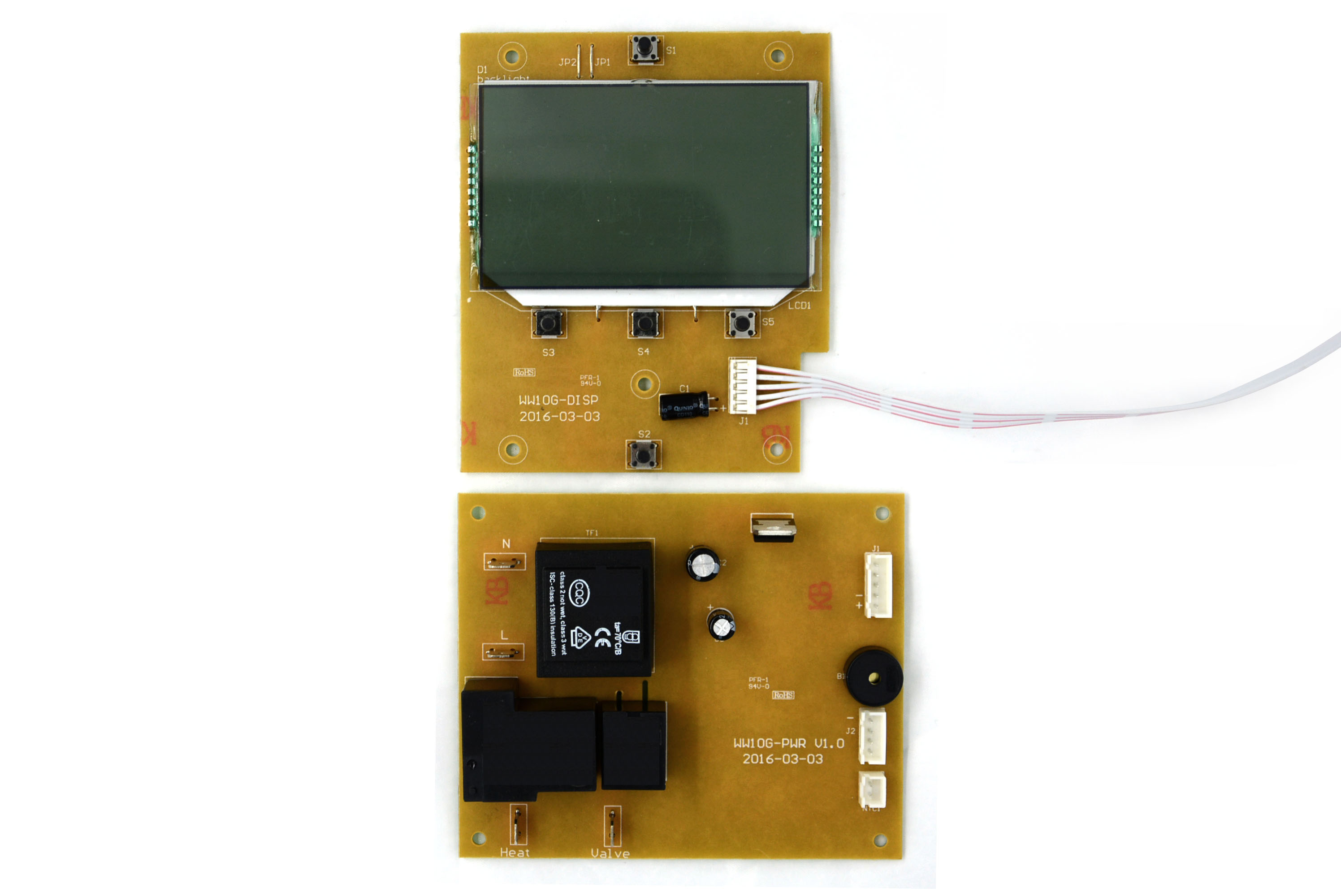 产品特点:环保、安全、洁净、节能1、输入方式:5个点触按键,可设定加热温度。可选择夜间模式;  2、显示方式:一个大屏LCD显示,显示水壶内水温,可选择华氏温度或摄氏温度显示。可显示加热状态、加水状态; 3、控温方式:NTC检测,智能控温; 4、工作模式:通过NTC智能控温,能设定水壶水温。带三路水位检测探头,能自动加水并在加满水后自动停止加水。带夜间模式,整套电源板可以实现智能、节能、环保使用。
